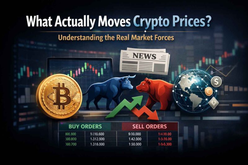 What moves crypto prices is one of the most misunderstood topics in the market. Many investors assume prices rise or fall because of news headlines, hype, or social media narratives. In reality, crypto price movements are driven by a small set of underlying forces that repeat across every market cycle.